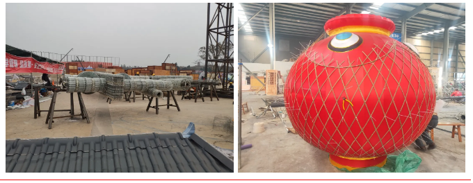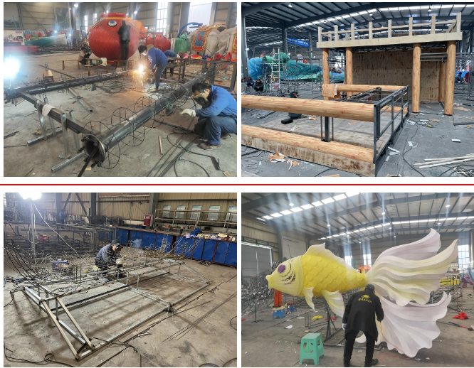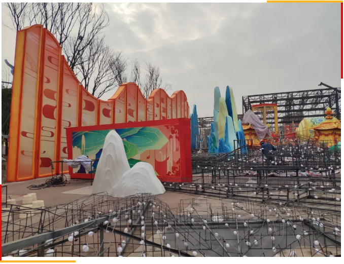 目前燈組分別在東方彩燈出口基地、中華彩燈大世界兩個(gè)場(chǎng)地進(jìn)行精心制作。